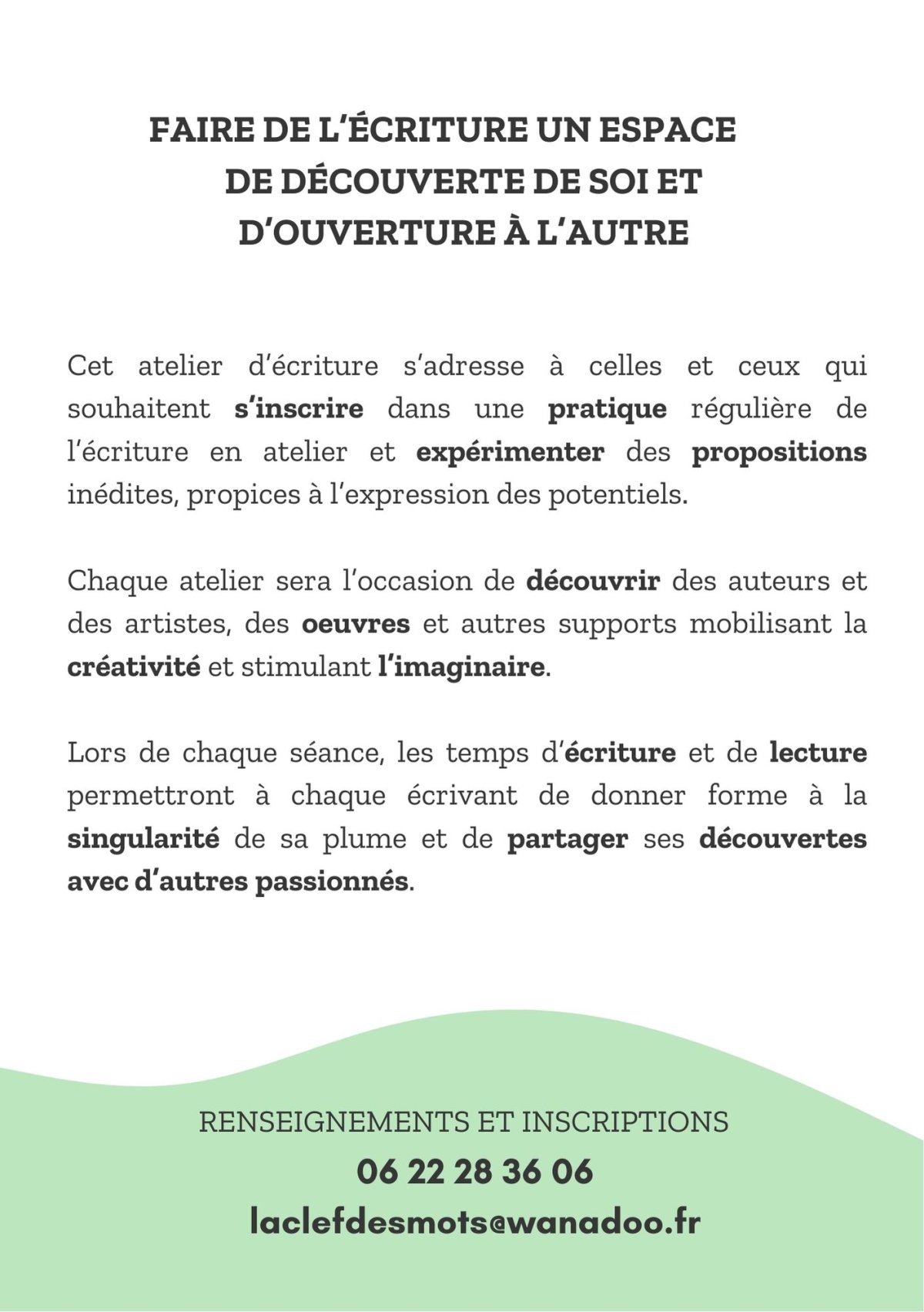 La Clef des Mots propose, au travers de programmes d’actions adaptés et novateurs, des ateliers d’écriture à un très large public :